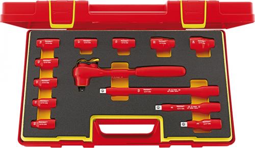 VDE-isolerad hylsnyckelsats med 9 st hylsor, 3 st förlängare (93/148/273 mm) och 1 st 1/2" spärrskaft.