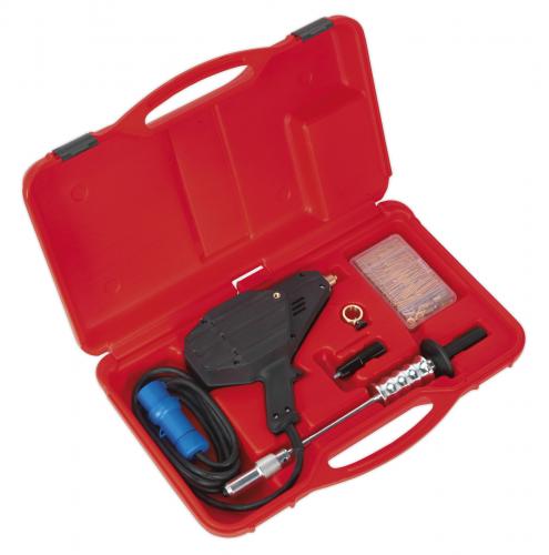 En professionell spotter för reparation av karosseriskador, komplett kit med utrustning för riktning med vågtråd/dragkam m.m