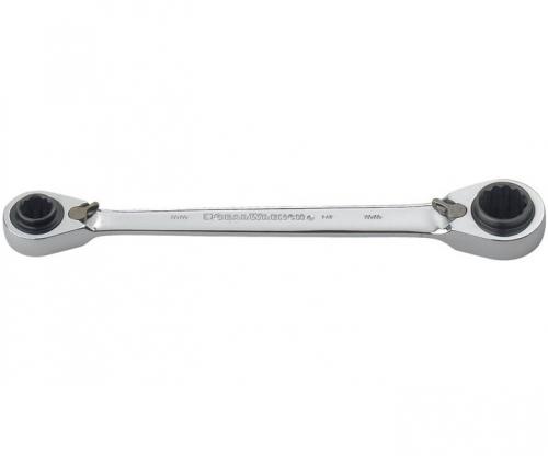 Denna GearWrench Quadbox innehåller fyra stycken "quad"-ringspärrnycklar, dvs ringspärrnycklar med 4st storlekar på varje nyckel.