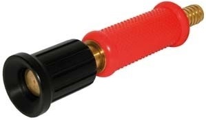 Kraftigt spolmunstycke med hölje och tätningar i EPDM-gummi, vridbart munstycke, kan regleras från helt stängd/dimma till kraftig stråle.