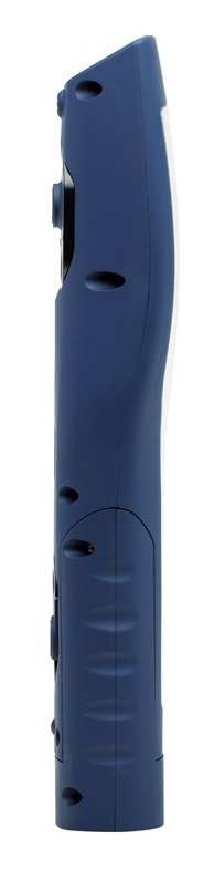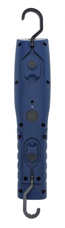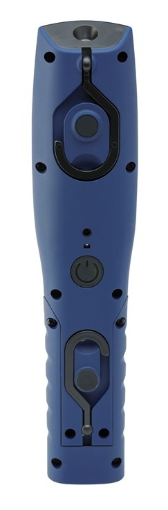 Tillverkad av slagtåligt kompositmaterial belagd med en mjuk yta av blått gummi som ger ett varmt, säkert och skönt grepp även med oljiga händer och i väta. Gummerad tryckknapp som även har blinkfunktion. IP 20 klassad och godkänd. Flexibelt lamphuvud juster och ställbar i 180° vinkel med fasta klicklägen däremellan. Utrustad med 1 st extra stor och kraftig magnet i foten och 2 st mindre på ryggen tillsammans med 2 st infäll och justerbara krokar åt var sitt håll.