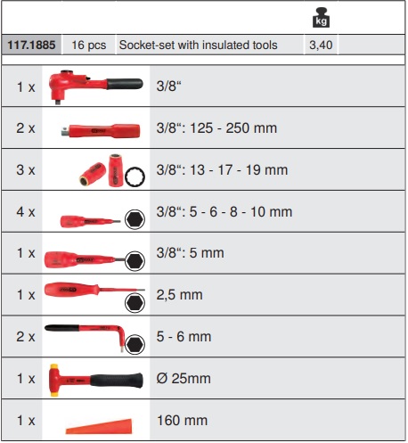 Isolerade verktyg som är godkända för arbeten upp till 1000V.