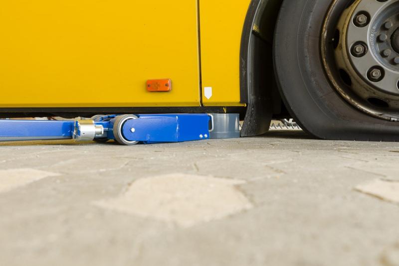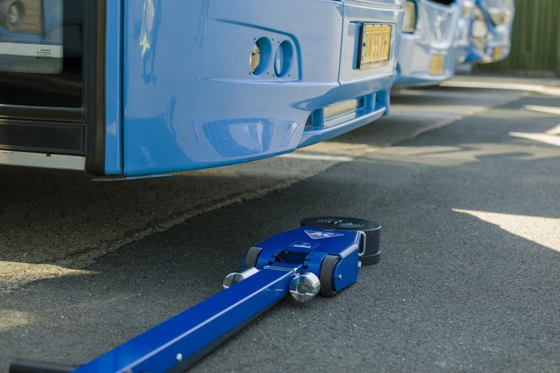 4-stegs luftdomkraft till låggolvbussar och andra fordon med låg frihöjd, min höjd på 100 mm och en lyftkapacitet på 40 ton.
