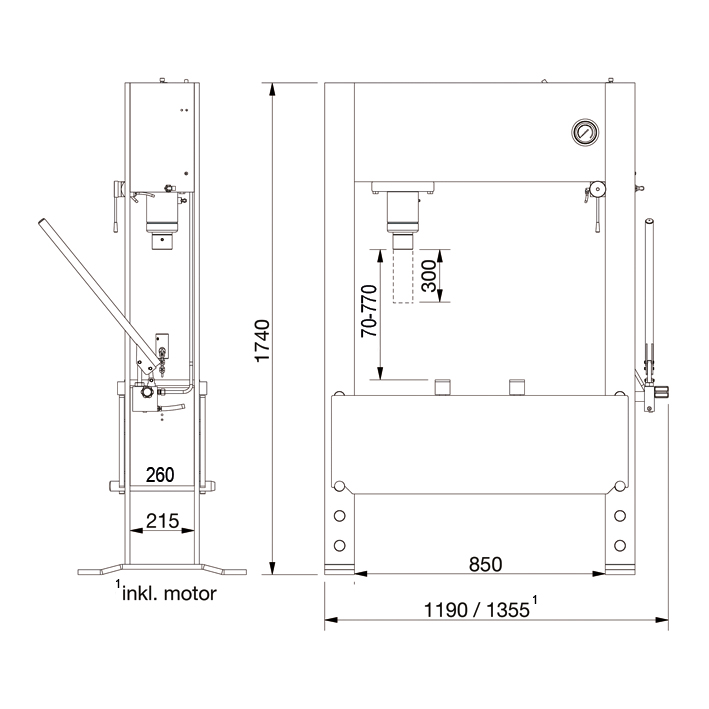 - Lufthydraulisk press till lastbilsverkstäder och industri Lufthydraulisk 1-stegs pump (Presshastighet: 6,1 mm/s).