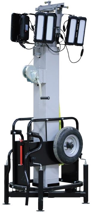 Belysningsmast 2,1-7 meter. Inkl. 4 st 150 W LED strålkastare, styrskåp, kopplingslåda samt spiralkabel.