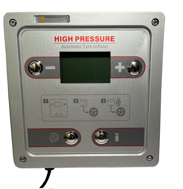 Robust digital luftpåfyllarklocka med metallhus, ljudsignal, slang och "clip-on" koppling.