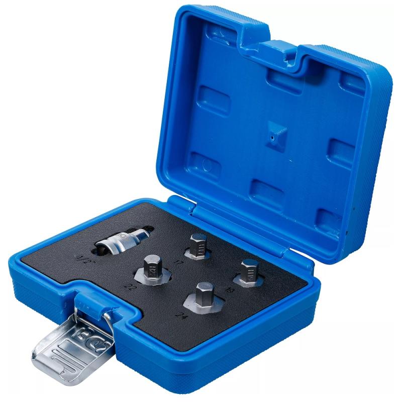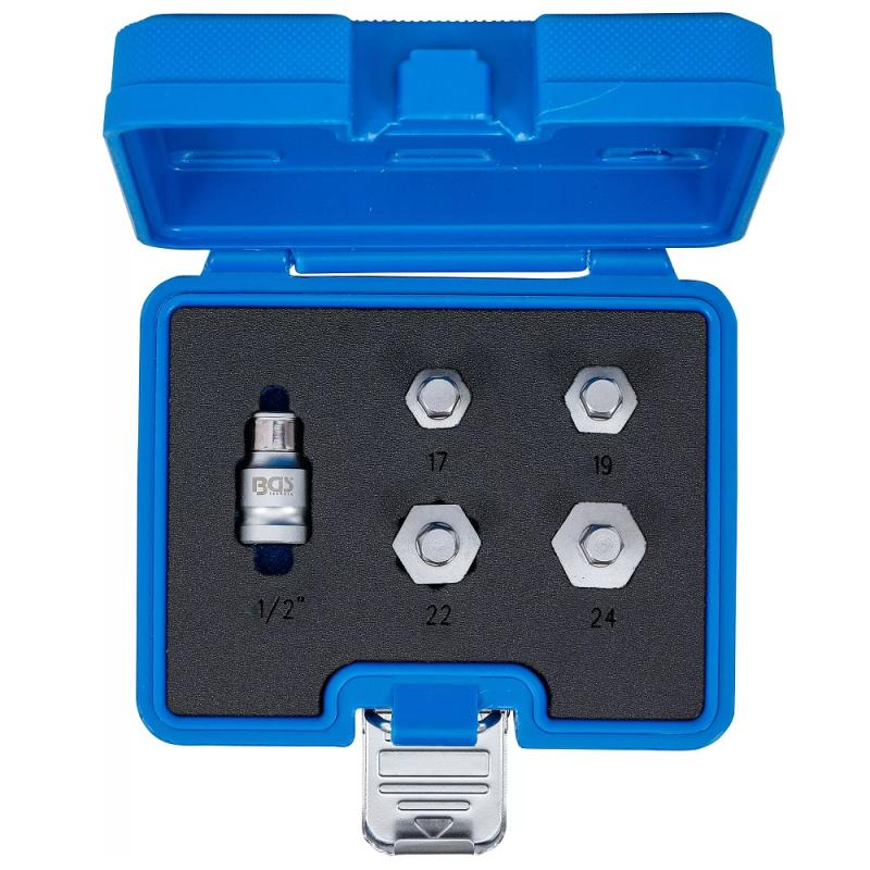 4st hjulhylsor (17/19/22/24mm), levereras komplett i slagtålig plastlåda.