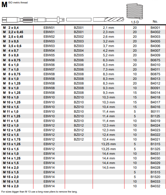 Baercoil för handmontering innehåller monteringsverktyg, borr (under M15), gängtapp, samt insatsgängor. Allt förpackat i en praktisk förvaringslåda.