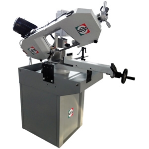 Manuell bandsåg, idealisk för sågning av stål och metall. Sågbygel i gjutjärn. Växellåda i oljebad. Två såghastigheter.