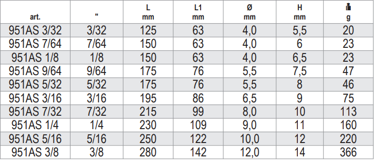 Beta 951AS Insex T-handtag i TUM 3/32"-3/8"