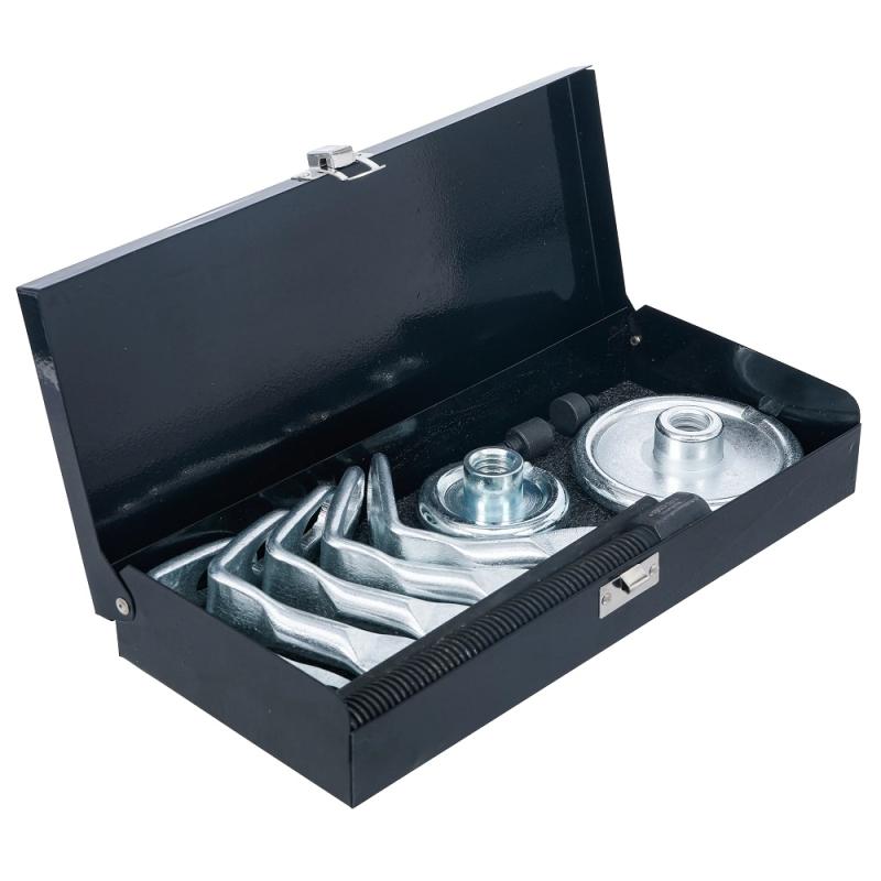 - För enkel utpressning ur drivaxlar och för utdragning ur bromstrummor, lämplig för 3-, 4-, 5- och 6-håls hjulnav och bromstrummor med hålcirkel upp till 200 mm.