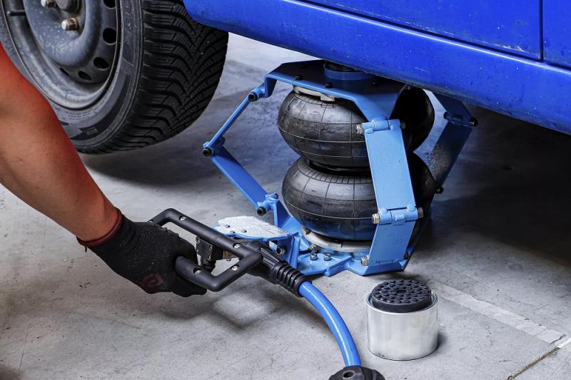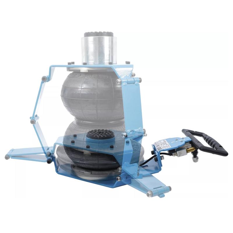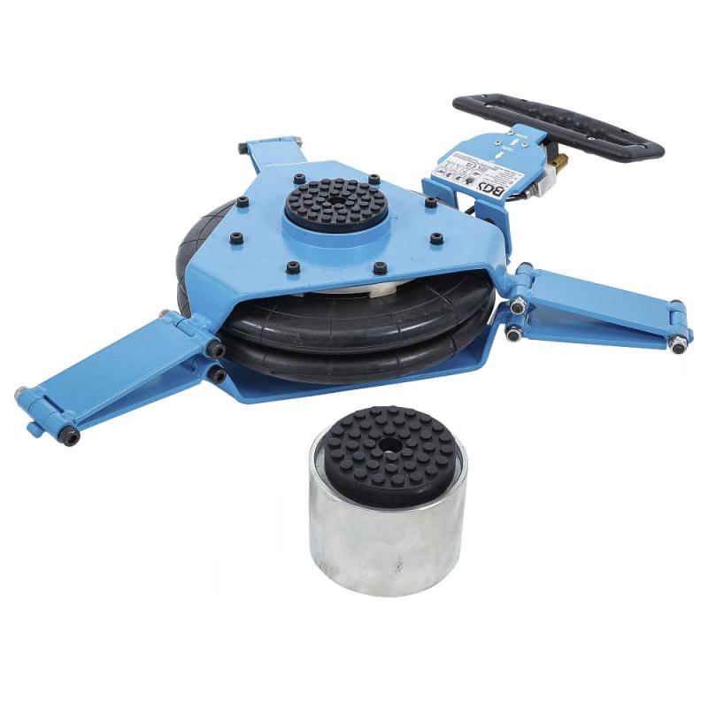 Pneumatisk snabblyftande domkraft med två luftbälgar, kort handtag och säkerhetsventil. Adapter på 83mm medföljer.