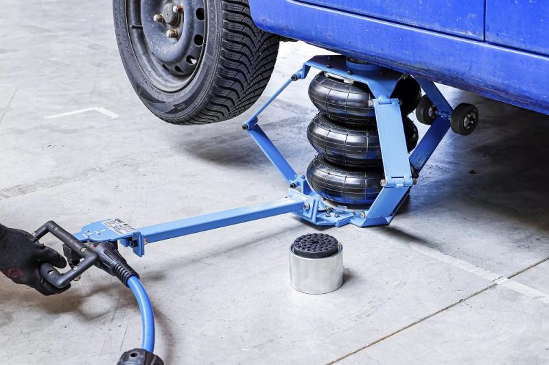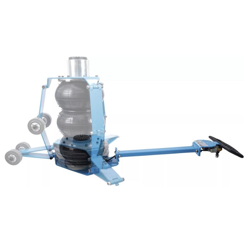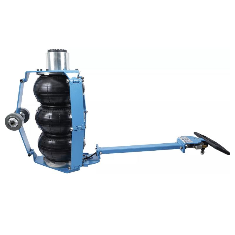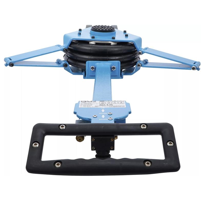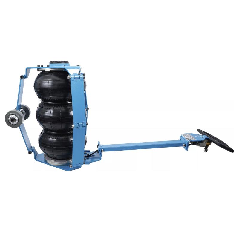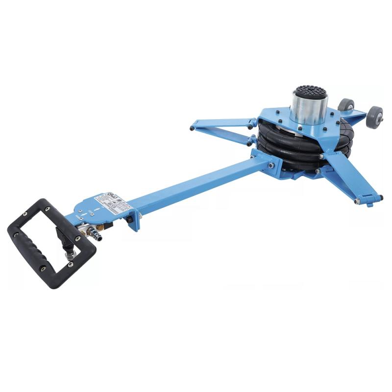 Pneumatisk snabblyftande domkraft med tre luftbälgar, långt handtag och säkerhetsventil. Adapter på 83mm medföljer.