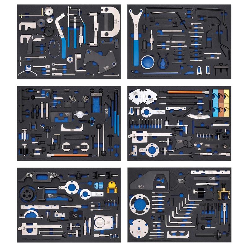 En hel verktygsvagn fylld med blockeringsverktyg till mängder av olika motorserier som sitter i de allra vanligaste bilmodellerna.