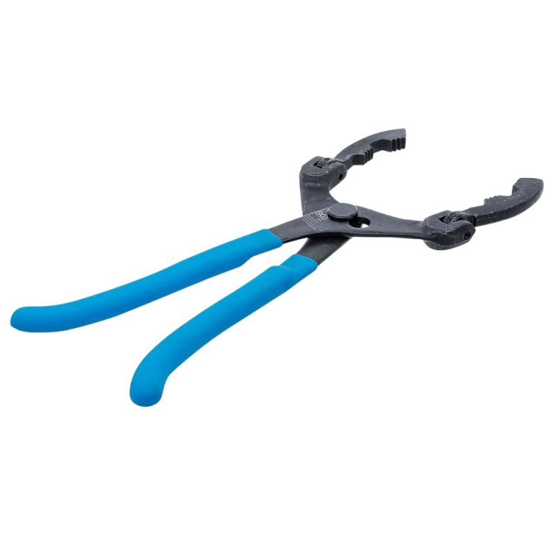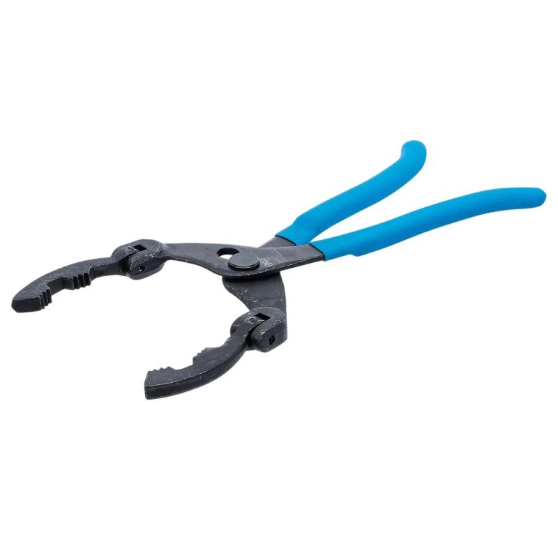 Oljefiltertång som även är lämplig till bränslefilter, 90° ledade käftar för att öka flexibiliteten, 4st fasta lägen (30° mellan varje).