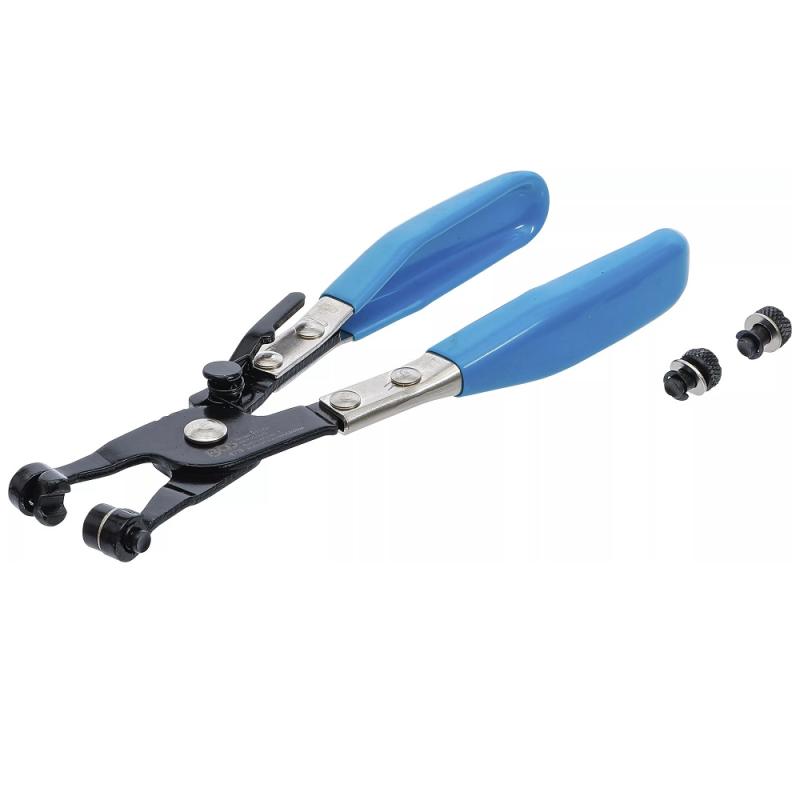 Slangklammertång med spärrfunktion/låsfunktion, används till självlåsande slangklämmor.