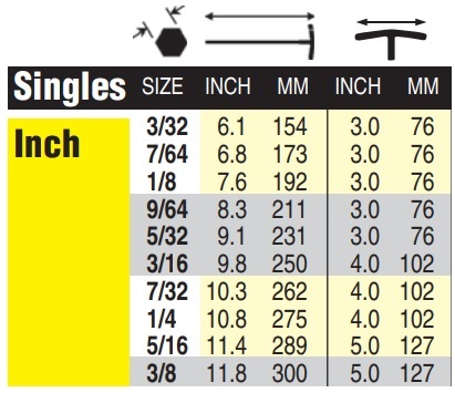Storlekar med kula: 5/32, 3/16, 7/32, 1/4, 5/16, 3/8”