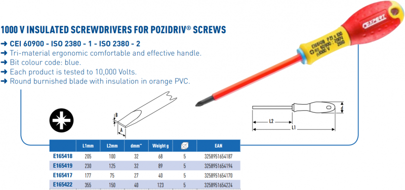- EXPERT (tidigare BOST) skruvmejselsats elektriker VDE 1000V isolerade ur Expertserien har rund polerad svart klinga med isolering i orange PVC specialplast.