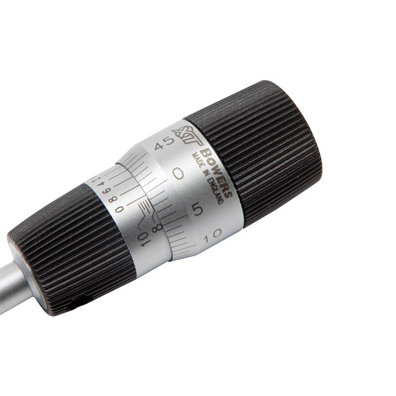 Analog 2-punkts invändig mikrometer i hög kvalité från Bowers, hårdmetallmätningsyta, inkl. kontrollring och UKAS-certifikat.