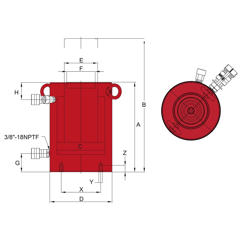 Dubbelverkande HögtonnageCylinder 100 ton, slag 300 mm