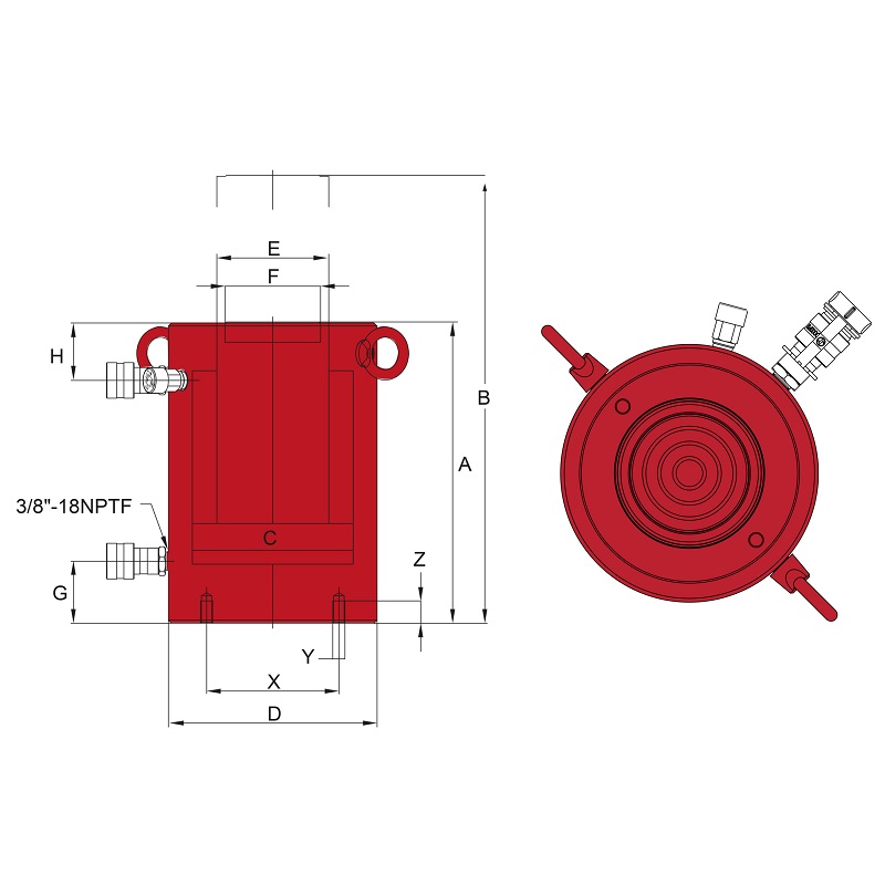 Dubbelverkande HögtonnageCylinder 150 ton, slag 50 mm