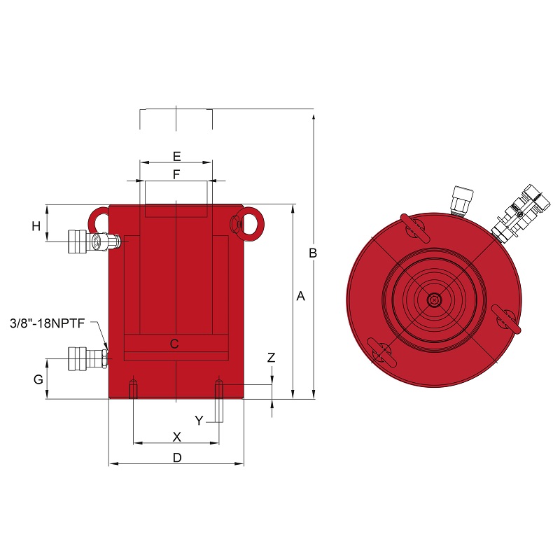 Dubbelverkande HögtonnageCylinder 200 ton, slag 200 mm