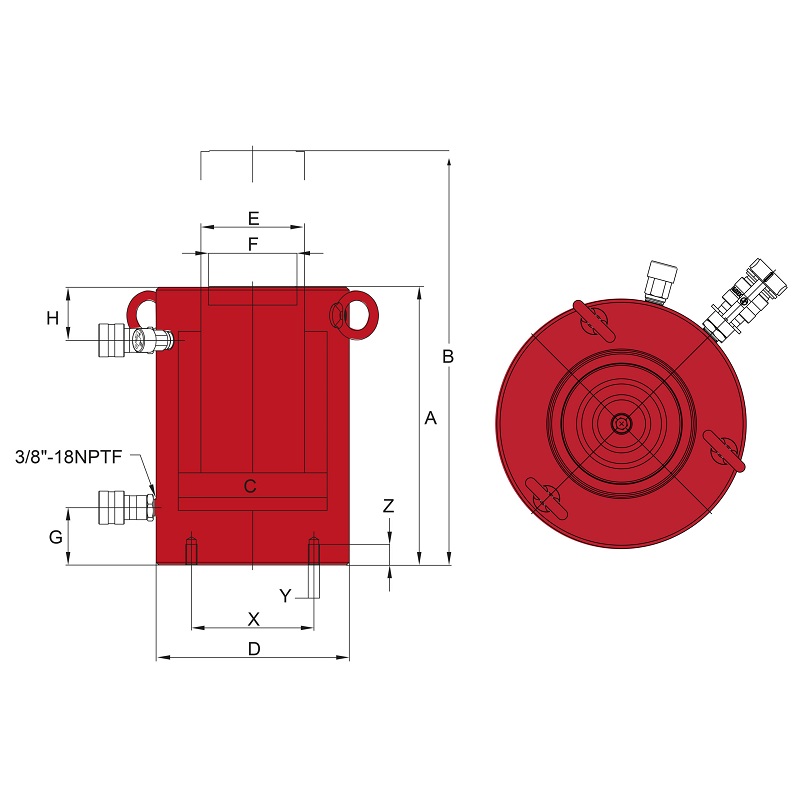 Dubbelverkande HögtonnageCylinder 200 ton, slag 50 mm