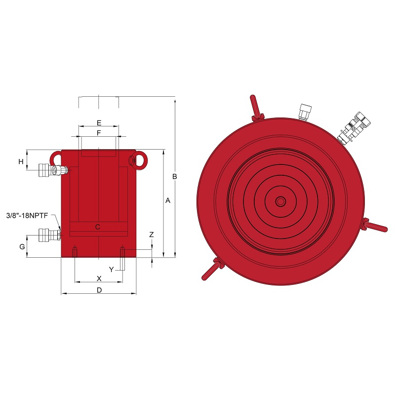 | Max cylinder kapacitet Tryck | 353,6 ton |