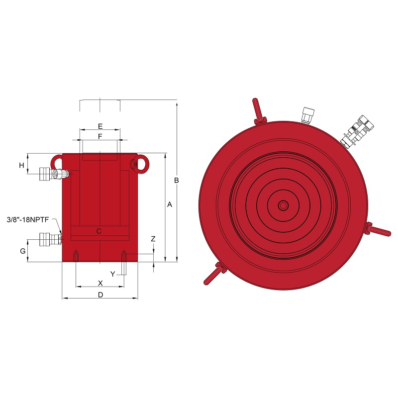 Dubbelverkande HögtonnageCylinder 400 ton, slag 150 mm