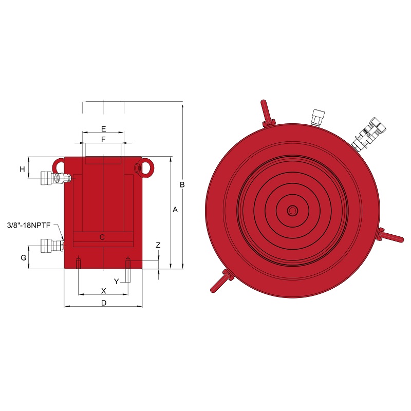 Dubbelverkande HögtonnageCylinder 400 ton, slag 50 mm