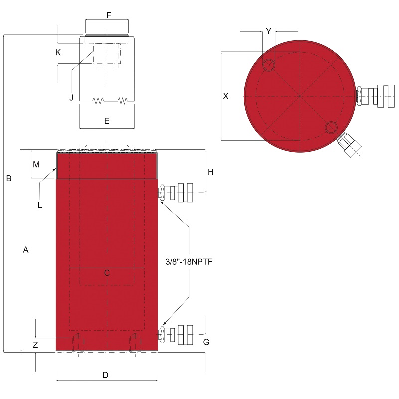 Dubbelverkande Cylinder 75 ton, slag 155 mm