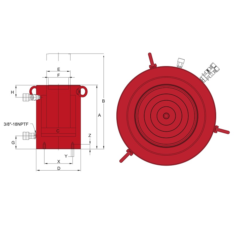 | Max cylinder kapacitet Tryck | 911,6 ton |