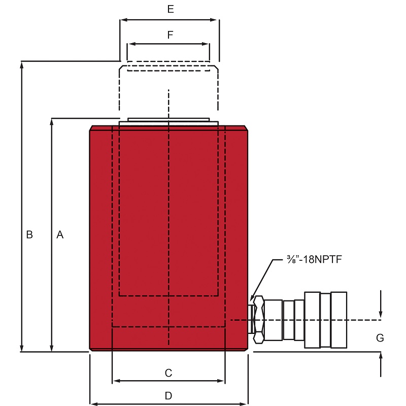 Lättviktscylinder 100 ton med 102 mm slaglängd, enkelverkande med kraftig fjäder för snabb retur av kolv.
