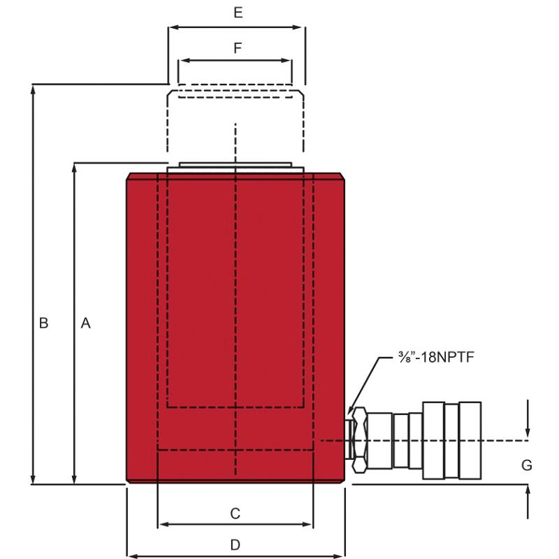 Lättviktscylinder 100 ton med 51 mm slaglängd, enkelverkande med kraftig fjäder för snabb retur av kolv.