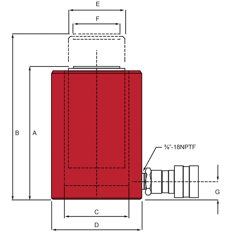 Lättviktscylinder 30 ton med 50 mm slaglängd, enkelverkande med kraftig fjäder för snabb retur av kolv.