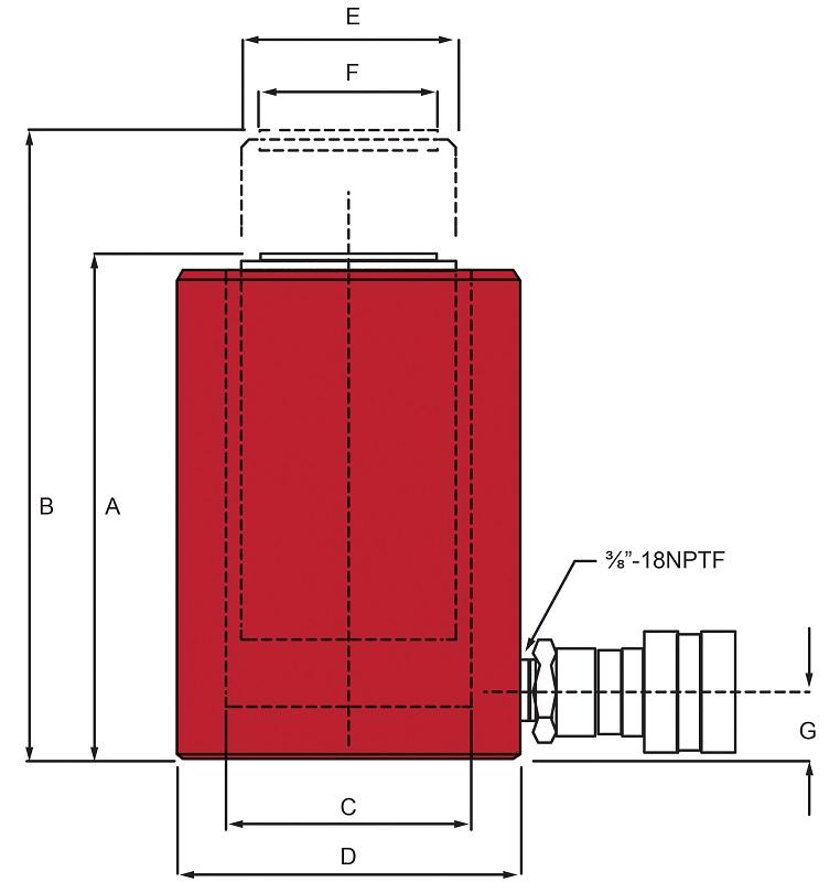 Lättviktscylinder 50 ton med 50 mm slaglängd, enkelverkande med kraftig fjäder för snabb retur av kolv.