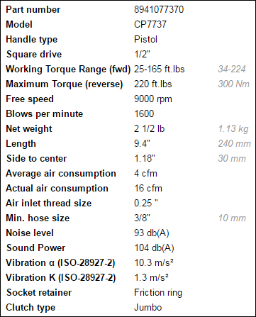 Chicago Pneumatic CP7737 - 1/2" Vinkelmutterdragare
