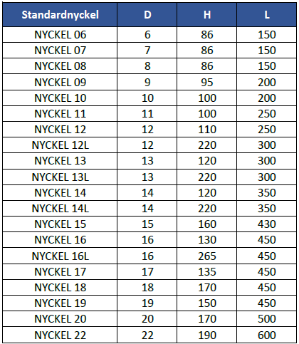 Chucknycklar i standardutförande, OBS! Dem långa modellerna är beställningsvara.