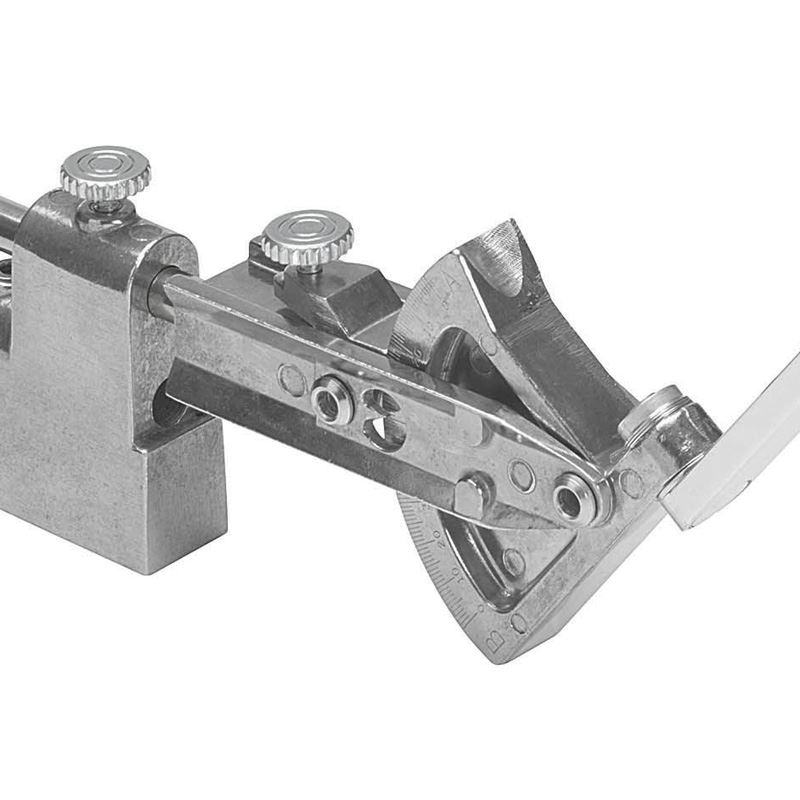 This 90-degree protractor has a matching locking lever to set and hold the tool at the desired angle.