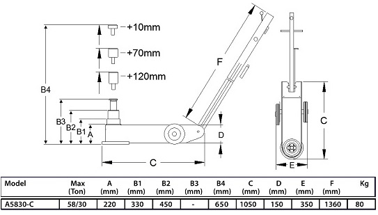 Compac A5830-C lufthydraulisk domkraft 58/30ton