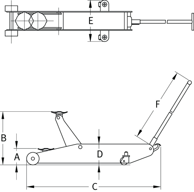 2,0 ton - Lyfthöjd 98 - 735 mm - Höglyftande domkraft med låg chassihöjd, quicklift, polyurethanhjul för lägre ljudnivå.