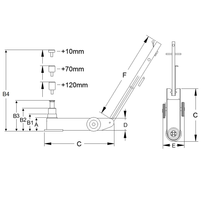 Standard med förlängare: 10, 70 och 120 mm