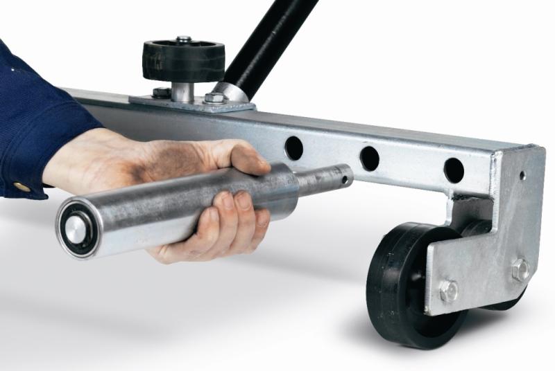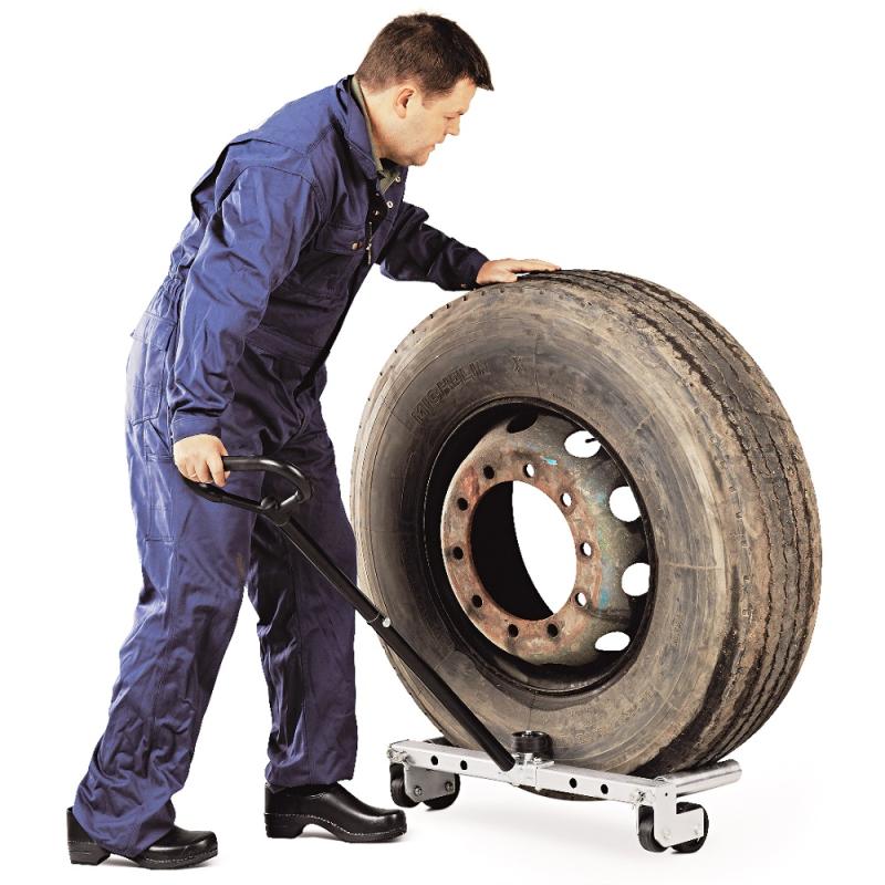 Hjuldolly med ergonomiskt handtag, kullagrade rullar för enkel däckrotation, som dessutom som går ställa i tre olika positioner för olika storlekar.