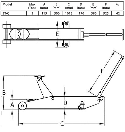 3,0 ton - Lyfthöjd: 115 - 500 mm - Fotpedal för snabbmatning av lyftsadeln till lasten.