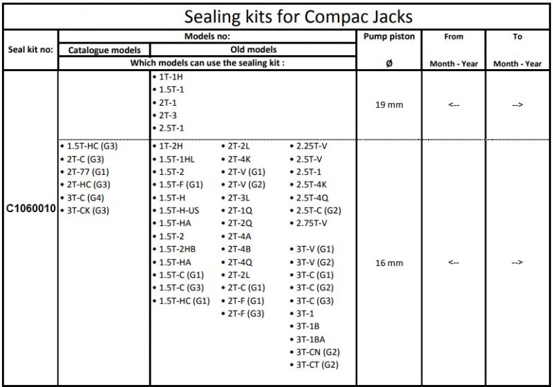 Packningssatser för vissa av Compac's domkrafter från 1,0 till 3,0 ton.