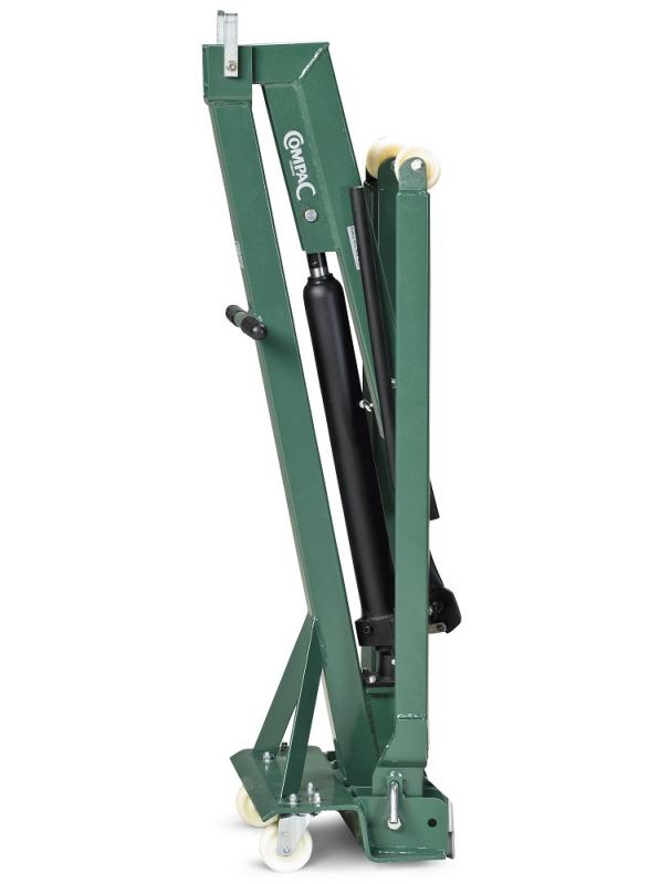 Robust verkstadskran med extra lång lyftarm, fjäderbelastat sänkningssystem med dödmansgrepp.