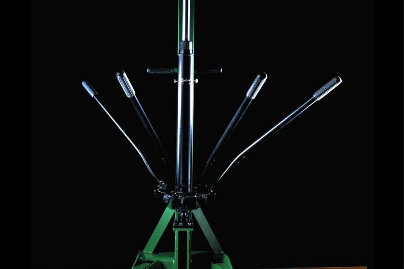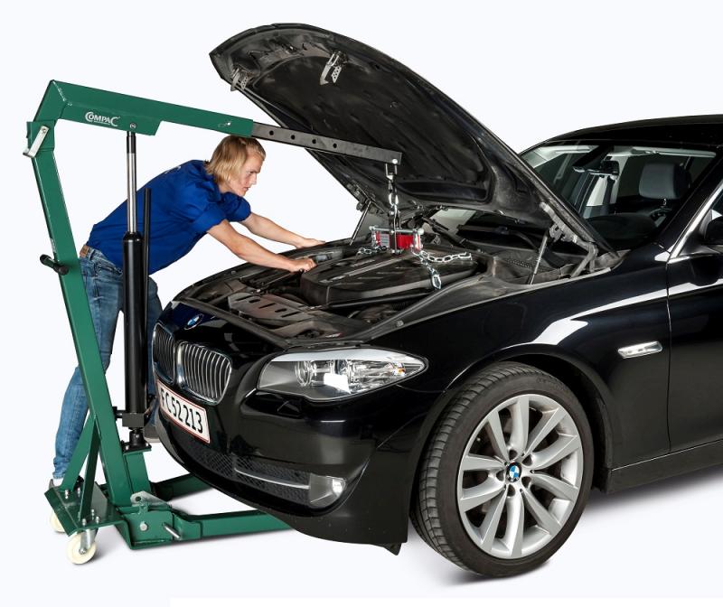 - Robust verkstadskran med extra lång lyftarm, fjäderbelastat sänkningssystem med dödmansgrepp.