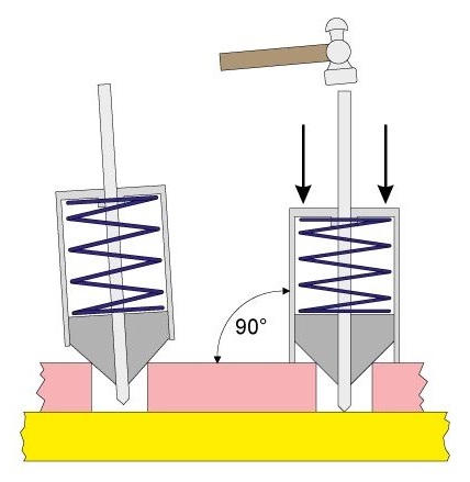 Koniskt verktyg som centrerar körnspetsen i mitten av ett hål, t.ex vid märkning i igenom balkar m.m
