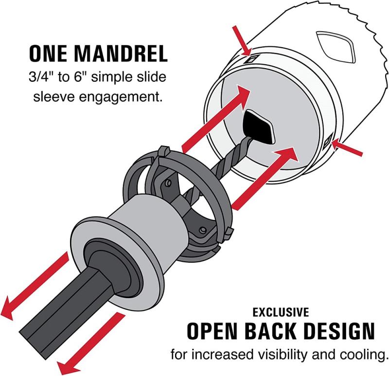 Nytt patenterat hålsågsystem med upp till x10 snabbare kärnborttagning utan verktyg, samma låssystem används för samtliga hålsågar 19-152mm.