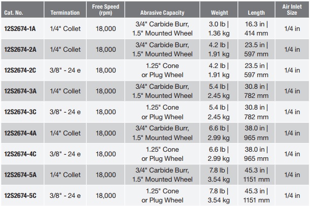 Extra långa slipmaskiner, upp till 1.1m för t.ex sliparbete inne i rör och liknande.